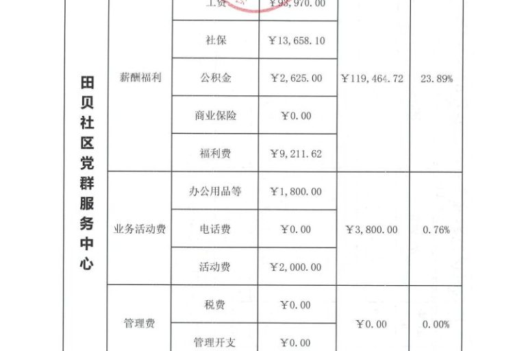 田贝社区党群服务中心2024年第2季度经费使用明细表
