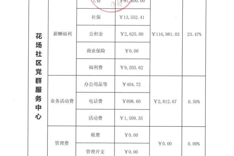 花场社区党群服务中心 2024年第2季度经费使用明细表
