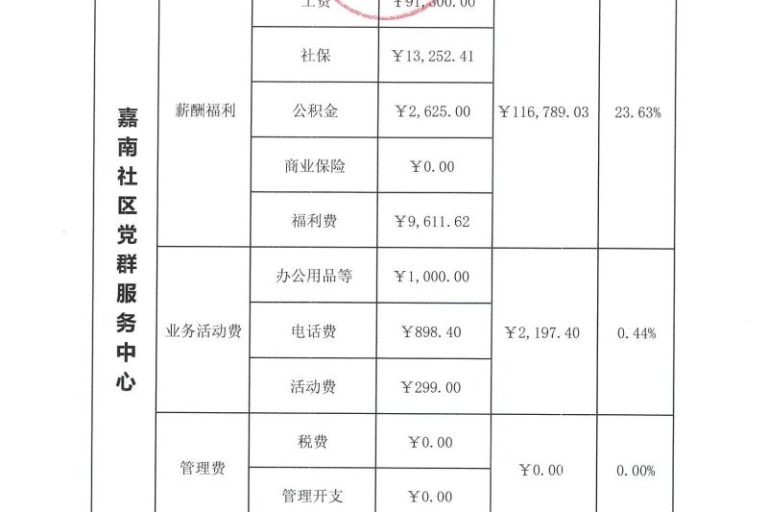 嘉南社区党群服务中心 2024年第2季度经费使用明细表