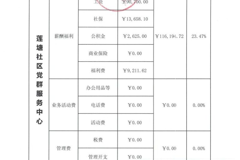 莲塘社区党群服务中心 2024年第2季度经费使用明细表