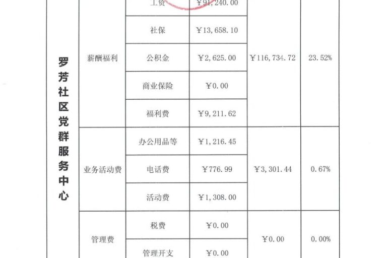 罗芳社区党群服务中心 2024年第2季度经费使用明细表