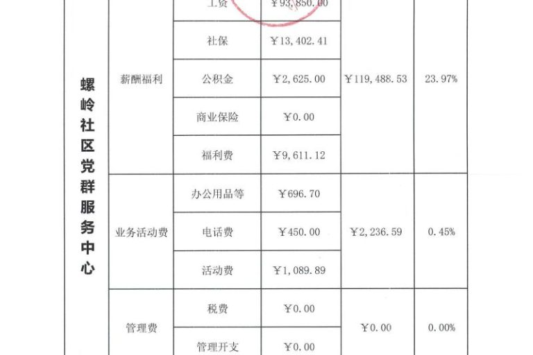 螺岭社区党群服务中心 2024年第2季度经费使用明细表