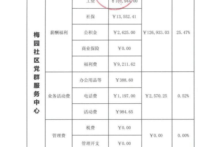 梅园社区党群服务中心2024年第2季度经费使用明细表