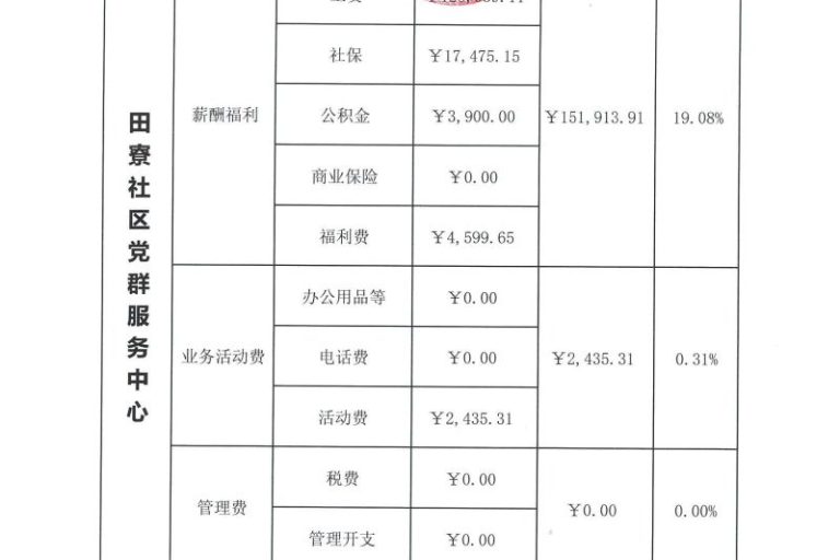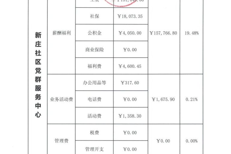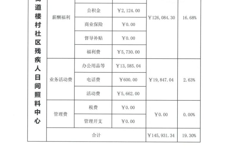 新湖街道楼村社区残疾人日间照料中心2024年第一季度财务公示