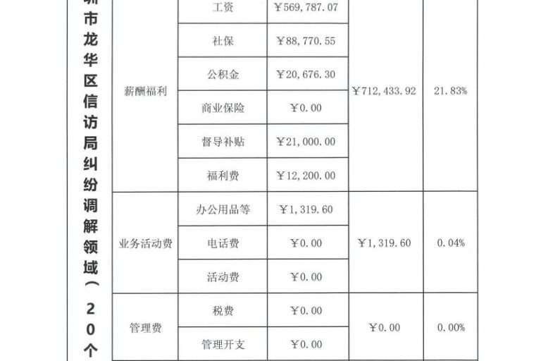深圳市龙华区信访局纠纷调解领域(20个) 2023年第四季度经费使用明细表