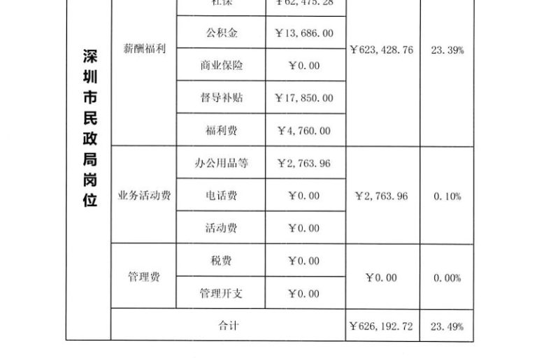 深圳市民政局岗位(17个) 2023年第4季度经费使用明细表