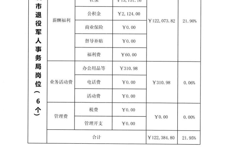 深圳市退役军人事务局岗位(6个)2023年第4季度经费使用明细表