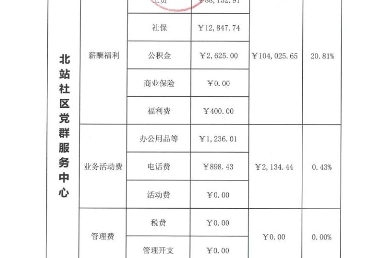 北站社区党群服务中心2023年第四季度财务公示