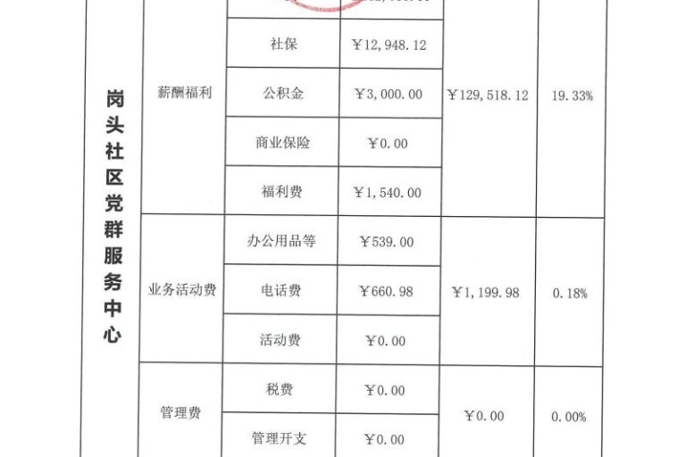岗头社区党群服务中心2023年第四季度财务公示