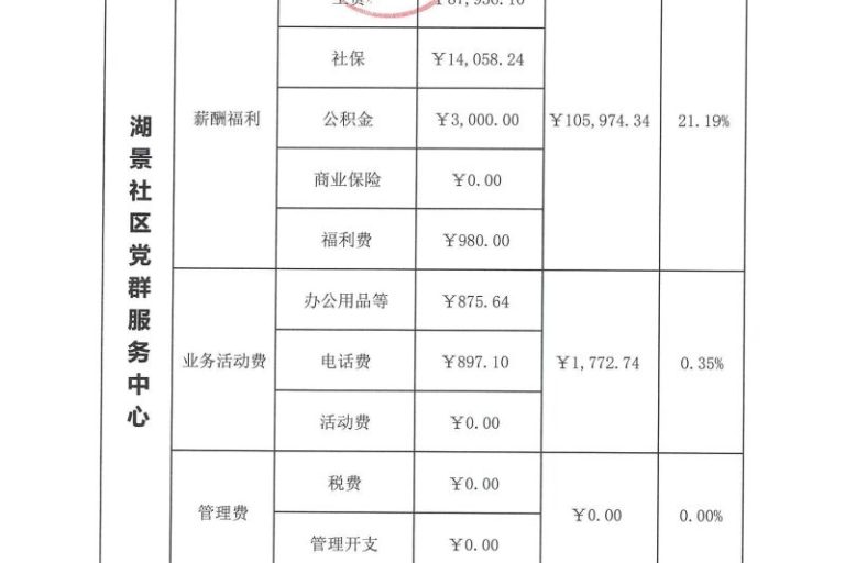 湖景社区党群服务中心2023年第四季度财务公示