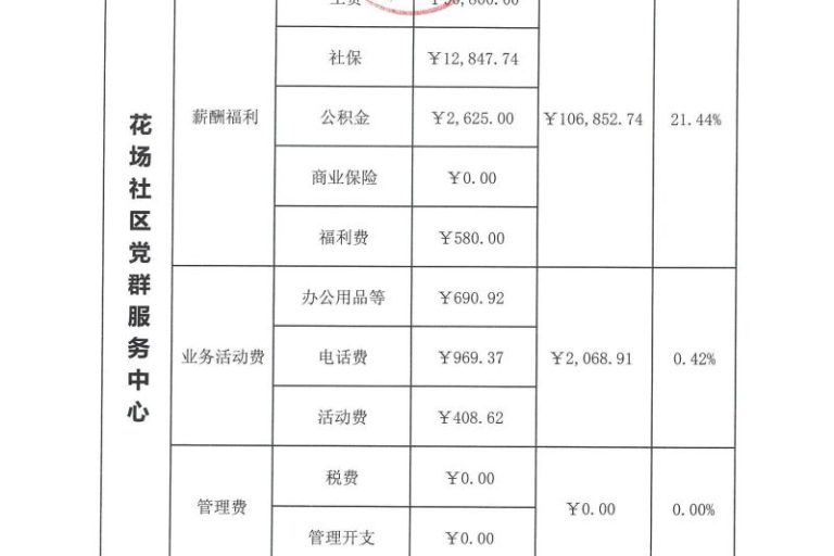 花场社区党群服务中心2023年第四季度财务公示