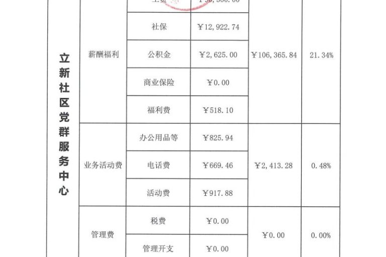 立新社区党群服务中心2023年第四季度财务公示
