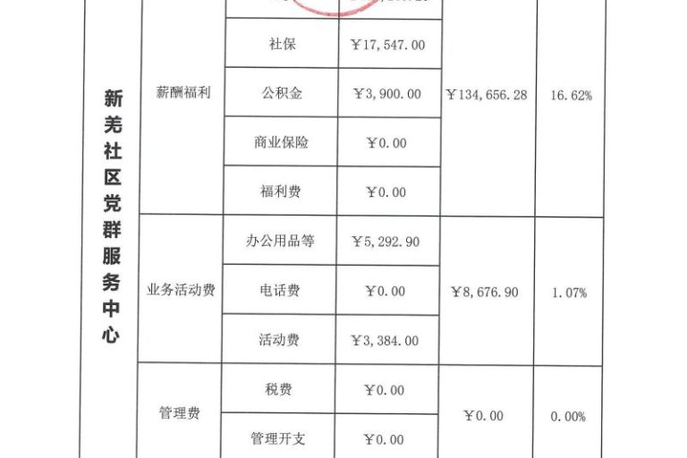 新羌社区党群服务中心2023年第四季度财务公示