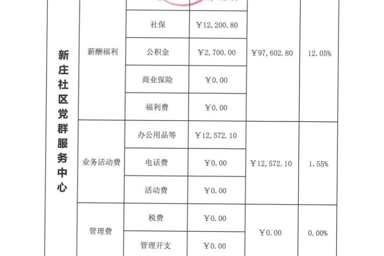新庄社区党群服务中心2023年第四季度财务公示