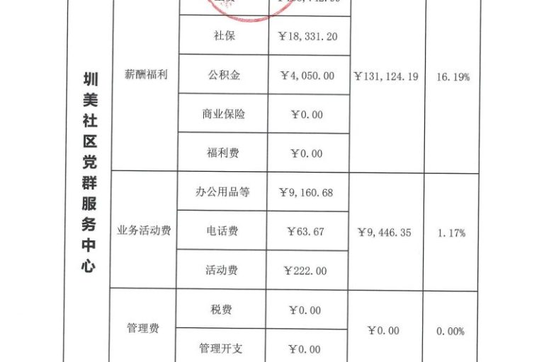 圳美社区党群服务中心2023年第四季度财务公示