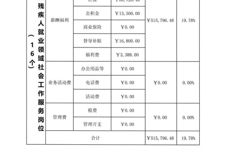 2023年第四季度龙华区残疾人就业领域社会工作服务岗位(16个)经费使用明细表