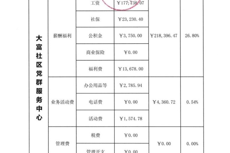 2023年第四季度大富社区党群服务中心经费使用明细表