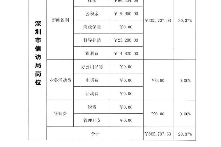 深圳市信访局岗位(8个)2023年第3季度经费使用明细表