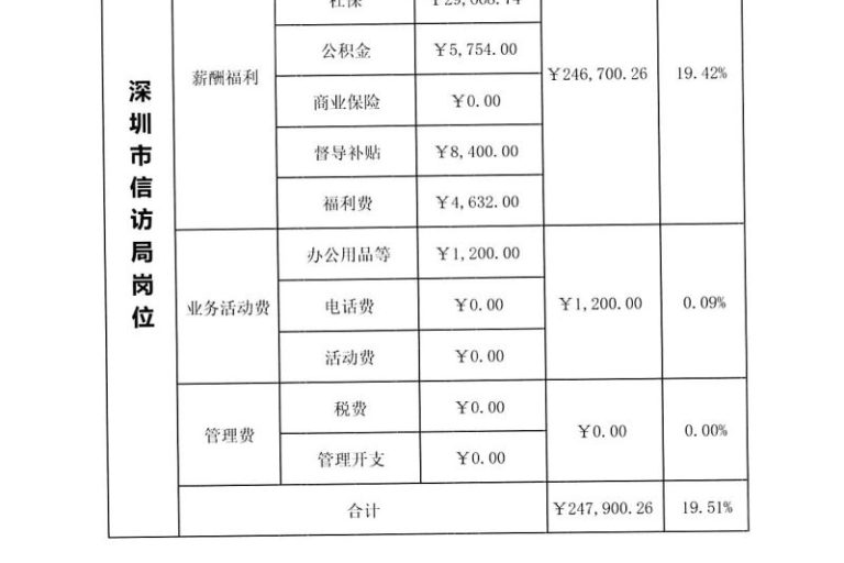 深圳市信访局岗位(24个)2023年第3季度经费使用明细表