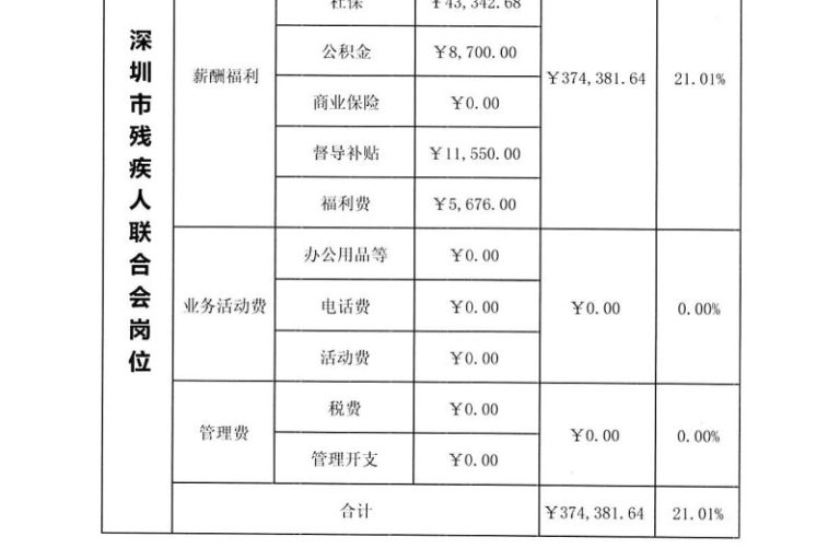 深圳市残疾人联合会岗位(11个)2023年第3季度经费使用明细表