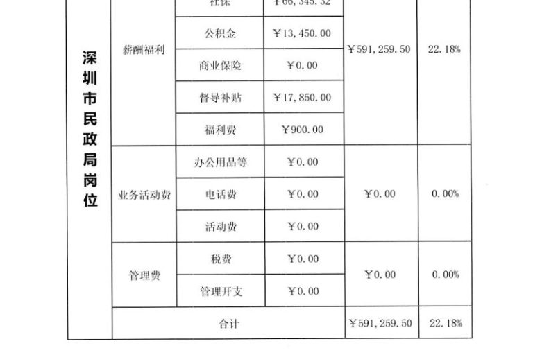 深圳市民政局岗位(17个) 2023年第2季度经费使用明细表