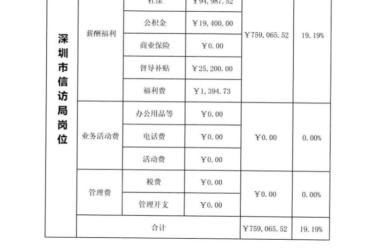 深圳市信访局岗位(24个)2023年第2季度经费使用明细表