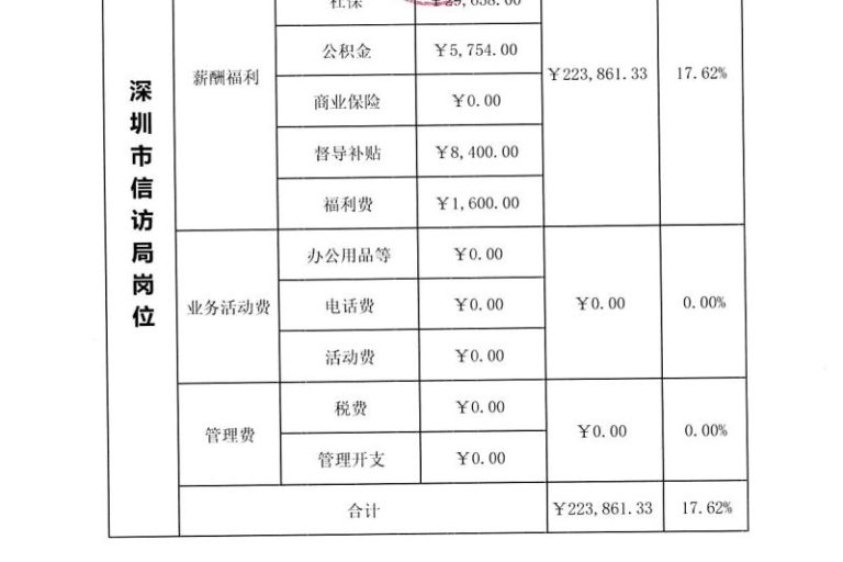 深圳市信访局岗位(8个)2023年第2季度经费使用明细表