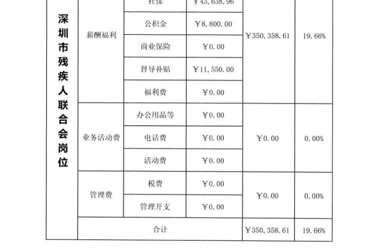 深圳市残疾人联合会岗位(11个)2023年第2季度经费使用明细表