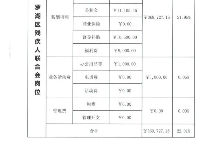 罗湖区残疾人联合会岗位(10个)2023年第2季度经费使用明细表