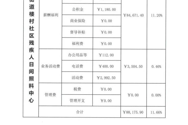 新湖街道楼村社区残疾人日间照料中心2023年第二季度财务公示