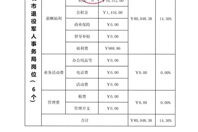 深圳市退役军人事务局岗位(6个)2023年第1季度经费使用明细表